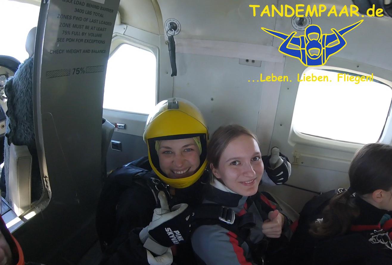 Tandemsprung mit einer Frau Einmalig – Tandemspringen mit einer Frau. Fallschirmspringen als Tandemsprung-Passagier ist ein sehr beliebtes Action-Freizeiterlebnis für unzählige Menschen. Sowohl der Adrenalinkick im freien Fall, als auch die Ruhe und der Ausblick am offenen Fallschirm stehen auf vielen „to-do“ und „Bucketlists“ unserer Kunden. Doch gibt es auch Tandemsprung-Passagiere, die ihren Traum vom Fliegen gerne mit einer weiblichen Tandempilotin verwirklichen wollen. Jetzt kommen wir von TandemPaar in’s Spiel. Denn wir haben sie – eure Tandemmasterin Franziska. Als überregional einziger weiblicher Tandeminstructor springt sie mit Dir aus über 4000 m aus einem Flugzeug! Und direkt hinein in fast eine Minute freien Fall! Das ist nahezu einmalig. Franziska Heidinger - Tandempilotin aus Bayern Sicher gibt es deutschlandweit mehrere Frauen, die dem Job des Tandemmaster nachgehen. Doch genauso sicher ist, dass das ein seltenes Angebot ist. Geschätzt bewegen wir uns hier im einstelligen Prozentbereich, gerechnet auf alle Tandempiloten in ganz Deutschland. Fallschirmspringen als Tandemsprung Passagier mit einer Frau als Deiner Tandemmasterin ist also ein Erlebnis der ganz besonderen Art. Auch in Bayern gibt es kaum Frauen, die Tandemsprünge machen. Umso stolzer sind wir, Franziska in unserem Team zu haben. Die Chefin von TandemPaar hat sich ihren Traum erfüllt und springt mit Dir und Deinen Freunden aus 3000 m – 4300 m aus Flugzeugen. Und das auf vielen verschiedenen Flugplätzen in Bayern, Österreich und Tschechien. Respekt und Religion - Tandemspringen mit einer Frau Wir können Wünsche wahr machen. Einigen Menschen ist es sowohl aus Glaubensgründen, als auch aus persönlichen Ansichten nicht möglich, einen Fallschirm-Tandemsprung zu machen. Auch Kunden mit muslimischem Glauben oder anderen Religionen verzichten teilweise auf das Action-Erlebnis Tandemspringen. Wir von TandemPaar respektieren jede Glaubensansicht und stehen neutral zu allen unseren Fallschirmsprung-Passagieren. Doch mit Franziska als weiblicher Tandempilotin können hier Träume wahr werden. Ihr ist es möglich, mit Frauen diverser Glaubensrichtungen einen Tandemsprung zu machen. Denn niemand soll auf das Gefühl des freien Falls verzichten müssen. Vertrauen beim Tandemsprung: Frauenpower für jedermann Auch das Thema Vertrauen spielt eine extrem Große Rolle beim Fallschirmspringen. Und hier kommt wieder unsere weibliche Tandemmasterin auf den Plan: denn einigen Passagieren zum Tandemspringen fällt es aus den unterschiedlichsten Gründen leichter, Vertrauen zu einer Frau aufzubauen. Schließlich herrscht beim Fallschirm-Tandemspringen sehr enger Körperkontakt und Berührungen am Körper sind teils unvermeidlich. Speziell weibliche Kundinnen und Kinder fühlen sich bei einer Frau wohler. Und wir versuchen, sämtlichen Wünschen unserer Tandemsprung-Kunden nachzukommen. Ein Glück also, dass wir nach Möglichkeit auch diesem Anliegen entgegenkommen können. Falls Du Fragen hast, kannst Du Franziska gerne eine E-Mail oder WhatsApp schreiben. Tandemspringen auf vielen Sprungplätzen mit Franziska: Unsere Kunden kommen aus Österreich und Bayern. Denn hier und auch in Klatovy in Tschechien sind wir als euer Tandemsprung Anbieter unterwegs. Zu unseren Sprungplätzen zählen: Klattau bei Furth im Wald Nahe Bayern Rothenburg ob der Tauber in Mittelfranken Deggendorf in Niederbayern Cham in der Oberpfalz Wels bei Passau in Oberösterreich Fromberg im Waldviertel in Niederösterreich Zell am See in österreichischen Salzburger Land Voraussetzungen zum Tandemspringen mit einer Frau Fallschirmspringen als Tandemsprung ist ein körperlich sehr anstrengender Job. Kein Wunder also, dass diese Art von Arbeit fast ausnahmslos von männlichen Tandemmastern übernommen wird. Wir haben eine weibliche Tandempilotin für euch – das ist nahezu einmalig! Doch einige Voraussetzungen müssen zum Tandemspringen mit unserer Frau als weiblicher Tandeminstructor erfüllt sein: Maximale Körpergröße: 195 cm / 1,95 m Maximales Körpergewicht: 85 kg Sprache Tandempassagiere: deutsch oder englisch Natürlich kannst Du gerne persönlich Kontakt mit Franziska aufnehmen, falls Du Interesse an einem Fallschirm-Tandemsprung mit einer Frau hast, aber noch Fragen offen sind. Schreibe einfach eine E-Mail mit Deinem Anliegen zum Tandemspringen als Passagier oder benutze auch gerne WhatsApp. Tandemsprung-Erlebnis als Geschenk oder Gutschein Gutscheine für einen Tandemsprung aus über 4000 m eigenen sich hervorragend als nächstes Geschenk. Die beschenkte Person kann sich dann mit uns in Verbindung setzen und einen Termin vereinbaren. Franziska ist als weibliche Tandempilotin auf vielen Sprungplätzen für euch unterwegs. In unserem Kalender habt ihr einen Überblick über alle unsere Termine zum Tandemspringen. Auf jedem Flugplatz ist Franziska als weibliche Tandemmasterin vor Ort für Deinen Fallschirmsprung aus 3000 m – 4300 m. (Produkt-ID: 3453930201)