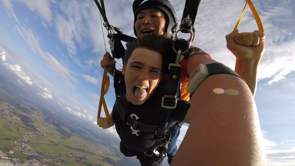 Freiheit in seiner vollendeten Form – das gibt es nur beim Fallschirmspringen. Erfülle auch Du Dir Deinen Traum vom Fliegen und spring als Tandemsprung-Gast mit Franziska und dem Team von Tandempaar aus 4300 Meter Höhe hinaus aus einem Flugzeug und hinein in das schönste Glücksgefühl der Welt. Wir zeigen Dir, was Adrenalin wirklich ist, wenn Du fest verbunden mit einem unserer Tandemmaster mit 200 km/h der Erde entgegen fällst, bis sich auf 1500 Metern über Grund euer Fallschirm öffnet, ihr sanft dem Flugplatz entgegen fliegt und Du vor Freude nur so jubeln wirst.