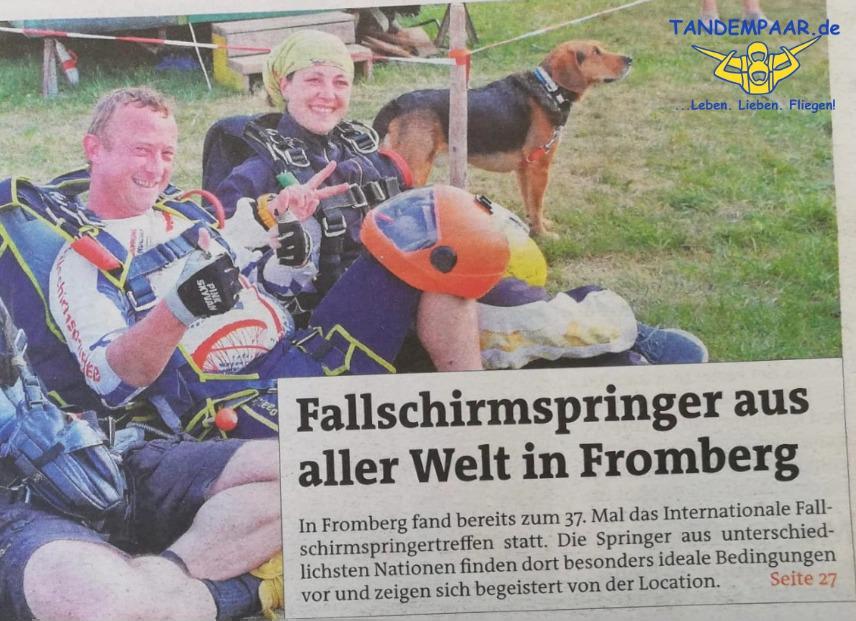 Fallschirmspringen in Niederösterreich. Das jährliche Fallschirmspringertreffen im kleinen Ort Fromberg im Waldviertel ist sowohl bei deutschen, als auch bei österreichischen Skydivern sehr beliebt. Und wir bieten Dir und Deinen Freunden an, Teil dieses Events zu sein: Als Passagier für einen Fallschirm-Tandemsprung! Jedes Jahr Anfang Juli findet das legendäre Camp der Fallschirmspringer statt. Auch Du als unser Gast zum Tandemspringen bist hier herzlich willkommen. Wir freuen uns, Dich aus über 4000 m dem Gefühl des Fliegens so nahe zu bringen, wie es für Menschen nur möglich ist. Mit einem Tandemsprung in Fromberg wird Dein Sommer in Österreich unvergesslich. Wie werde ich Tandemsprung Passagier in Niederösterreich? Du hast die Auswahl, ob Du Dir direkt ein Ticket für Deinen Fallschirm-Tandemsprung in Fromberg kaufst, oder ob Du Dir einen Termin reservierst. Hierbei hast Du dann die Möglichkeit, direkt in bar vor Ort bei uns zu bezahlen. Das hat den Vorteil für Dich, dass Du nicht an ein Ticket gebunden bist, falls wir wegen schlechtem Wetter Deinen Fallschirmsprung im Waldviertel absagen müssen. Ferner bieten wir Dir auch Rabatt-Angebote unter der Woche an. Dann machst Du Deinen Tandemsprung mit der Chefin oder dem Boss persönlich und sparst dabei auch noch Geld. Denn unsere Angebote „Ladykracher“ und „Buch den Boss“ stehen Dir als Sparangebot unter der Woche zur Verfügung. Diesen Vorteil hast Du nur bei Tandemsprüngen in Fromberg in Niederösterreich oder auf unserem Hauptsprungplatz in Klattau bei Furth im Wald Nahe der Grenze zu Bayern. In Niederösterreich Tandemspringen Unser Sprungplatz in Fromberg bei Kirchberg vorm Walde in Niederösterreich ist bei unseren Passagieren zum Fallschirmspringen sehr beliebt. Das Event ist etwas ganz einmaliges und hervorragend für einen Familienausflug. Denn es gibt hier immer was zu sehen beim Fallschirmspringen und in der großen Festhalle ist bestens für das leibliche Wohl gesorgt. Ein Gutschein für einen Tandemsprung in Fromberg im Waldviertel ist somit ein hervorragendes Geschenk. Ob zu Weihnachten, Geburtstag oder zum Jubiläum – wir sind für euch als euer Tandemsprung Anbieter jedes Jahr Anfang Juli in Fromberg in Niederösterreich. Spring mit uns aus der großen Pink Skyvan aus 4300 m und erlebe den freien Fall hautnah. Unsere Gutscheine und Tickets sind drei Jahre gültig. Die beschenkte Person kann sich nach Erhalt Deines Geschenks mit uns in Verbindung setzen und persönlich einen Termin in Fromberg zum Fallschirm-Tandemspringen vereinbaren. (Produkt-ID: 3453919850)